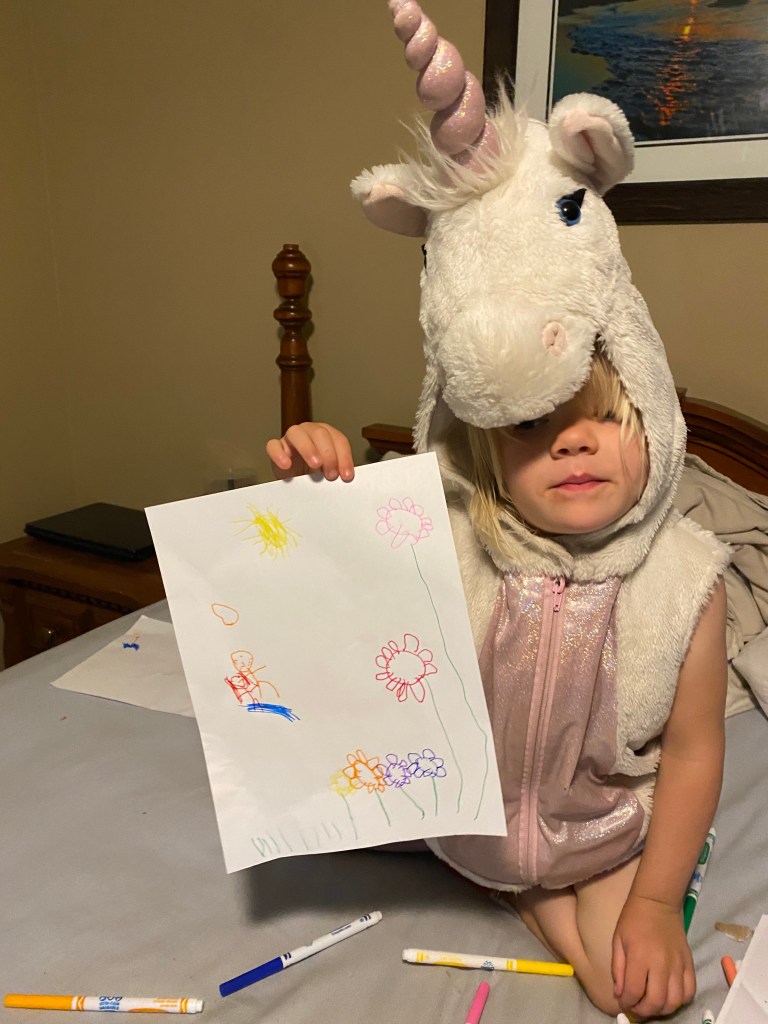 - Kid Drawings – This is by far the easiest one because all you have to do is hand them paper and markers. You can ask each kid to draw themselves with their dad. It doesn’t matter how old the kids are. From toddler scribbles to artistic portraits, they’re totally framable!
