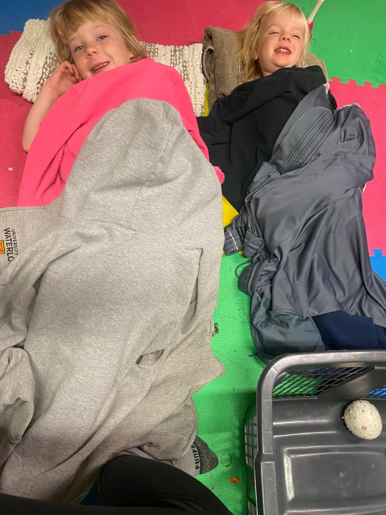 - With littler pieces of laundry, the kids can decide which part of their body gets covered next.