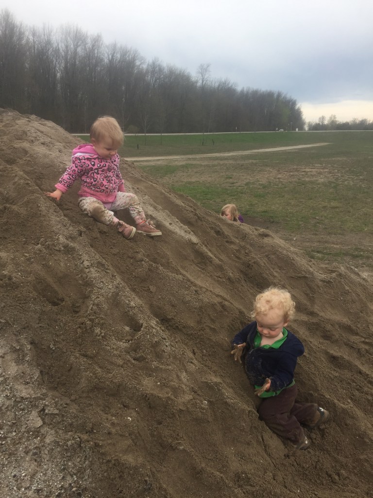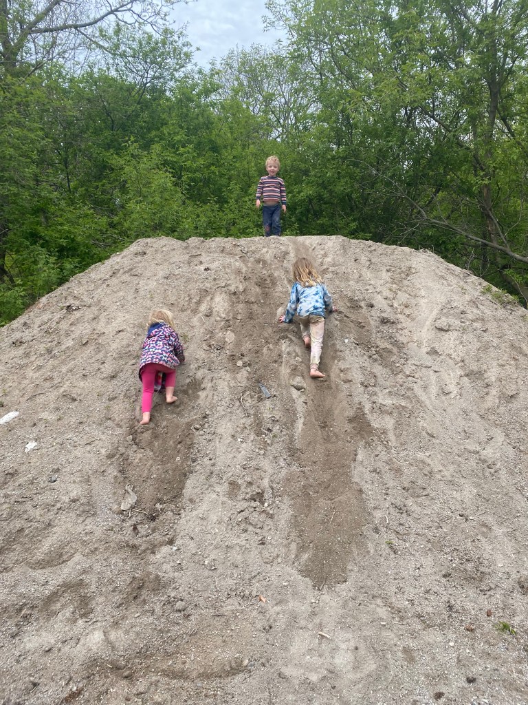 Every once in a while, we are lucky enough to find a big pile of dirt that hasn’t been used for anything yet. I can’t even tell you how much fun the kids have climbing up and sliding down. Everyone gets dirty, but unlike snow hills, no one complains of being cold or makes me carry their sled. We even use the dog’s leash as a climbing rope (not attached to the dog of course).