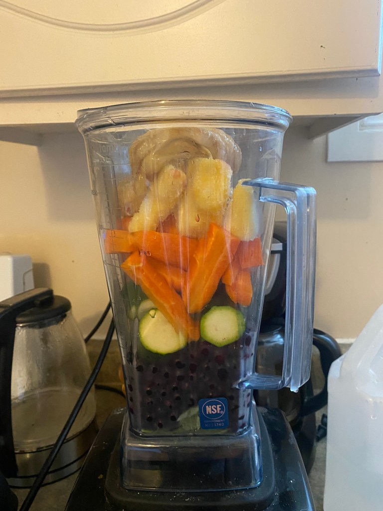 I invented this recipe about two years ago. I looked up every recipe I could on the healthiest muffins possible and I just couldn’t find anything that made me really impressed. At most, it involved sneaking one thing in with a lot of sugar and flour. So I started with a recipe I found online and modified it continuously over many many baking attempts to make it as delicious and nutritious as possible. The muffins have three fruits and three vegetables in them, extra eggs for protein, oat flour for more nutrition and better blood sugar impact, and have a low sugar option. My husband and I love these muffins and a few kids have tried them and liked them. This recipe works well for me in my Vitamix blender. I like the Vitamix because it even blends up kale and carrots. But who knows, maybe another blender would work too. I often blend the ingredients the night before and leave the Vitamix in the fridge, then I can mix them up like regular muffins the next morning. You could totally grate carrots and use spinach instead of kale (to blend more easily). If you live in town and want to try them first, I have some in my freezer right now (June 2022) that you can sample!