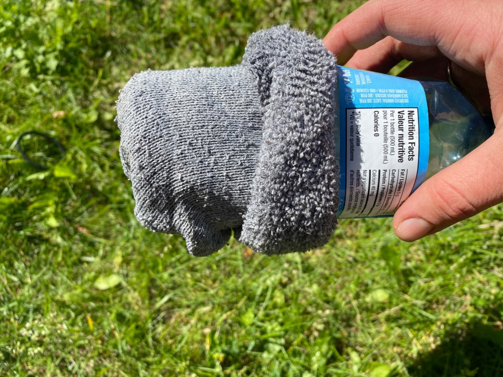 It’s summertime now, which means it’s bubble season. But let’s face it. Little kids aren’t that good at blowing bubbles. And the bubbles don’t stay around that long. I have bought three different types of bubble machines (because they fascinate me) and they all stopped working well after the first few times. Today my kids were in the middle of struggling to create giant bubbles (even I wasn’t successful) when I remembered a device my mom made for us during the pandemic.