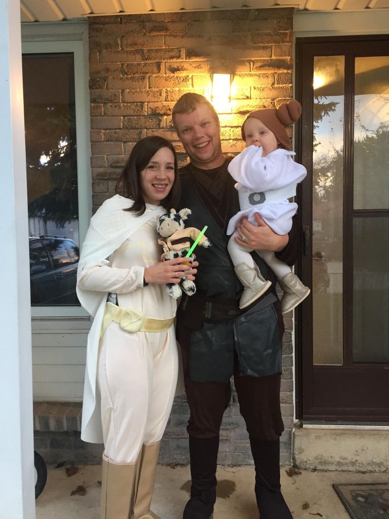 When we found out we were having twins, the first thing we did was look up twin Halloween costumes. We were most excited to do Luke and Leia. After Jake died, we decided that we still wanted to honour Jake with twin costumes. We dressed Robin as Leia and we dressed Jake’s favourite stuffed animal as Luke. Because I was dreading the grief triggers of Halloween, my friend, Sarah, dressed her son, Max, up as Han Solo. It was perfect. It gave Robin a little boy to trick-or-treat with, but it clearly did not replace Jake (Luke being the twin, and Han being the friend). Each year we dress up Jake’s stuffed cow in a costume that coordinates with his twin sister. They have so far been a dragon and a knight and Peppa and George Pig. This year they will be going as a Devil and an Angel. I’m glad Robin wants to be the Devil.