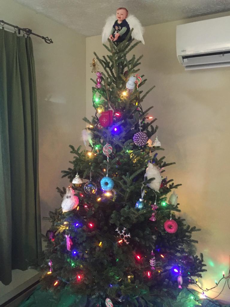 Every year we decorate a Jake tree. We got this idea from our friend, Lynne, who does a “Reilly” tree for her daughter. Lynne buys a memorial ornament each year to add to her tree. Jake is the angel on the top of our tree. We have decorated the rest of the tree in decorations that remind us of Jake. The candy decorations represent stories I have written for the kids about Jake and Robin (more on that in later posts).