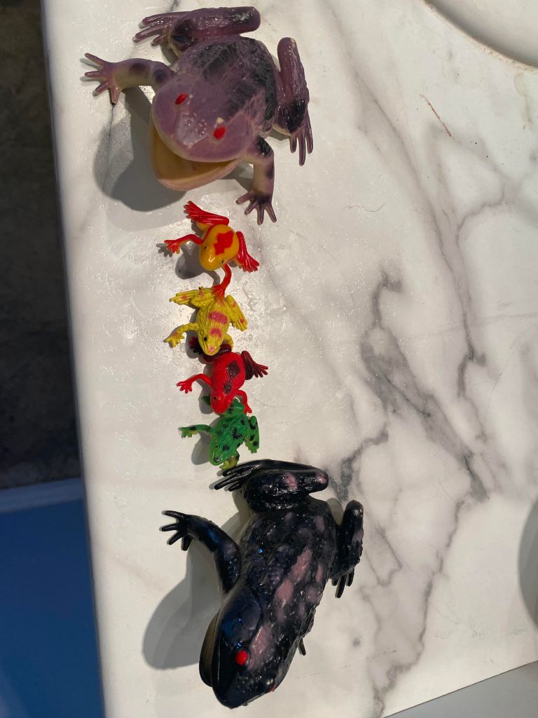 - Frogs and turtles – the big frogs came from my local dollar store. The little ones came from Amazon.ca.