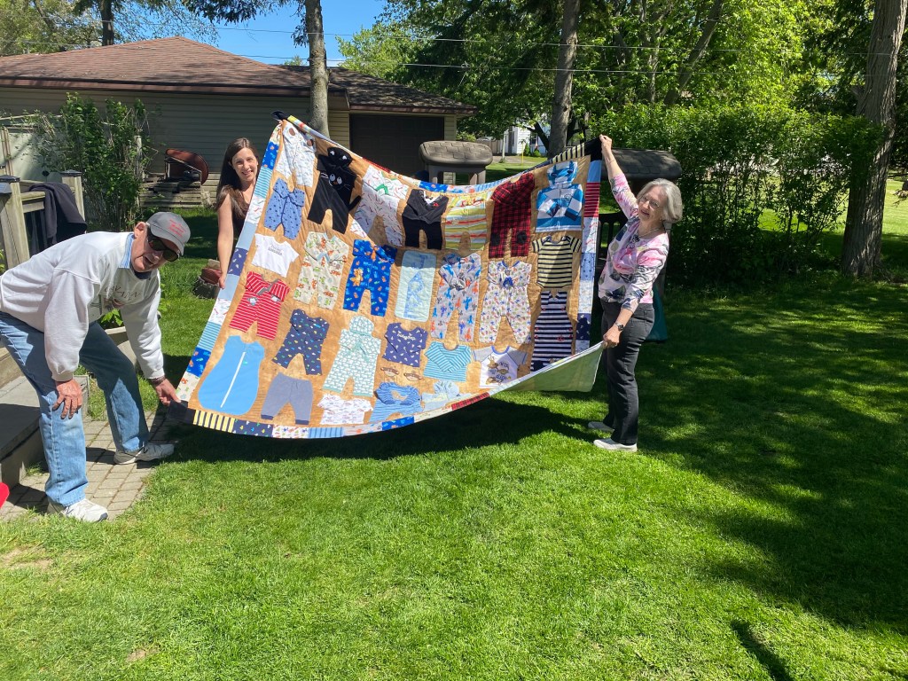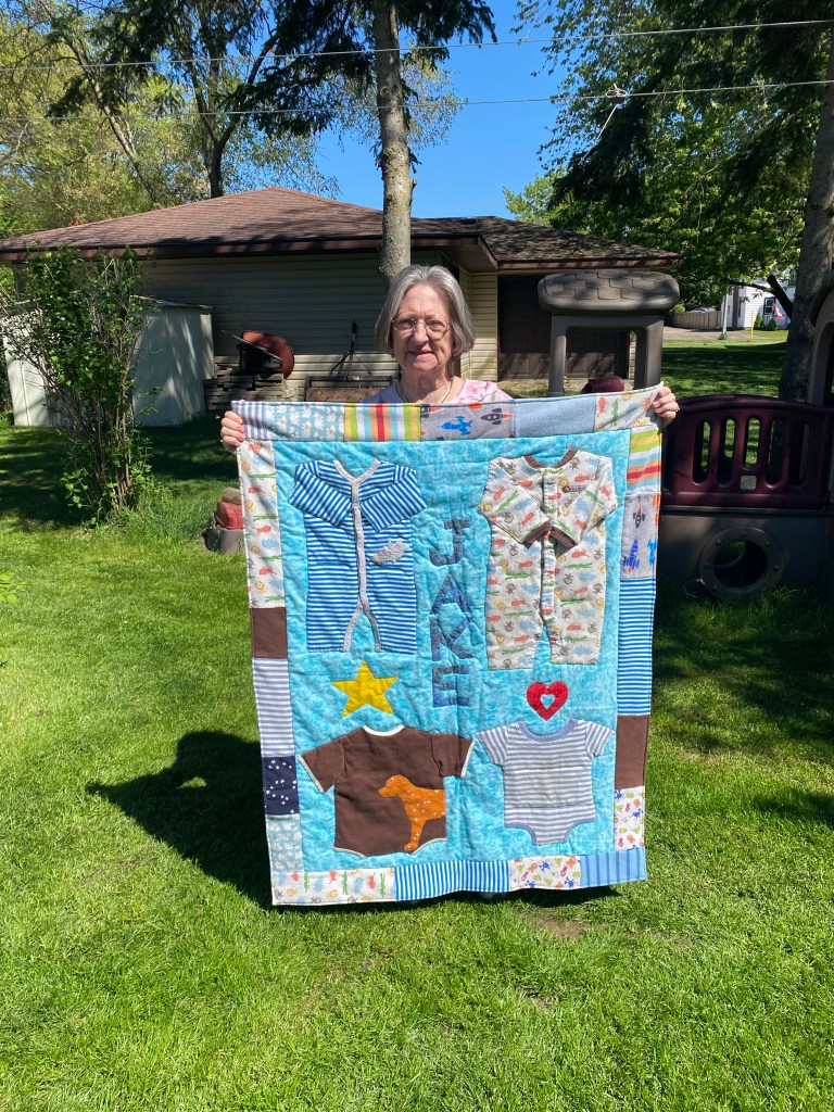 After Zach and Casey outgrew Jake’s clothes, I couldn’t bear to part with them. In a generous labour of love, my friend’s mother-in-law made us two quilts (using his baby blankets for the backing). When I see my children lying with their blankets, it makes me feel like Jake and my living children are more connected. When I wrap the blanket around myself, I like to think that it’s like Jake is cuddled up to me.