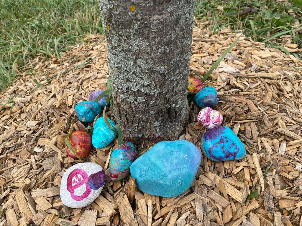 I have seen painted rocks around a few memorial trees. Some are expertly done and others are clearly done by little children. It makes me imagine just how many different people love the person the tree was planted for. Painted rocks could easily be put by a gravestone as well. You can buy acrylic paint or pens for rocks. We used a rock painting kit. It was a nice way to involve the kids.