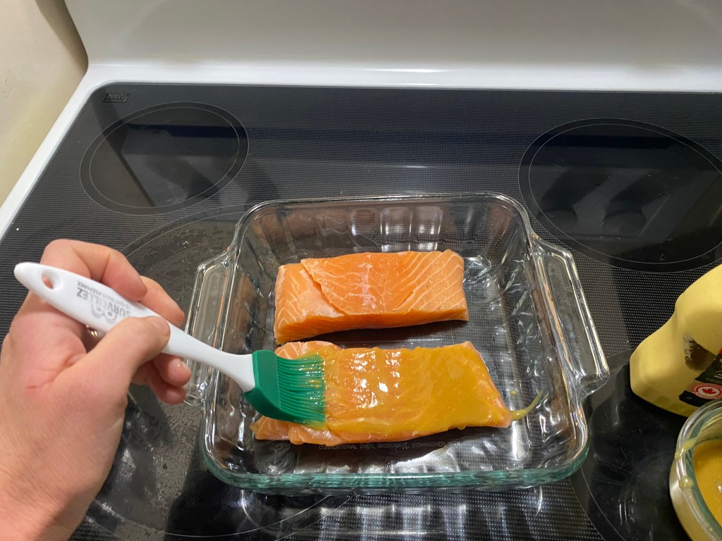 - Press them onto the salmon. Now you can re-enact that same scene from your kid’s favourite movie that you’ve been re-enacting every few minutes for the last three days.
