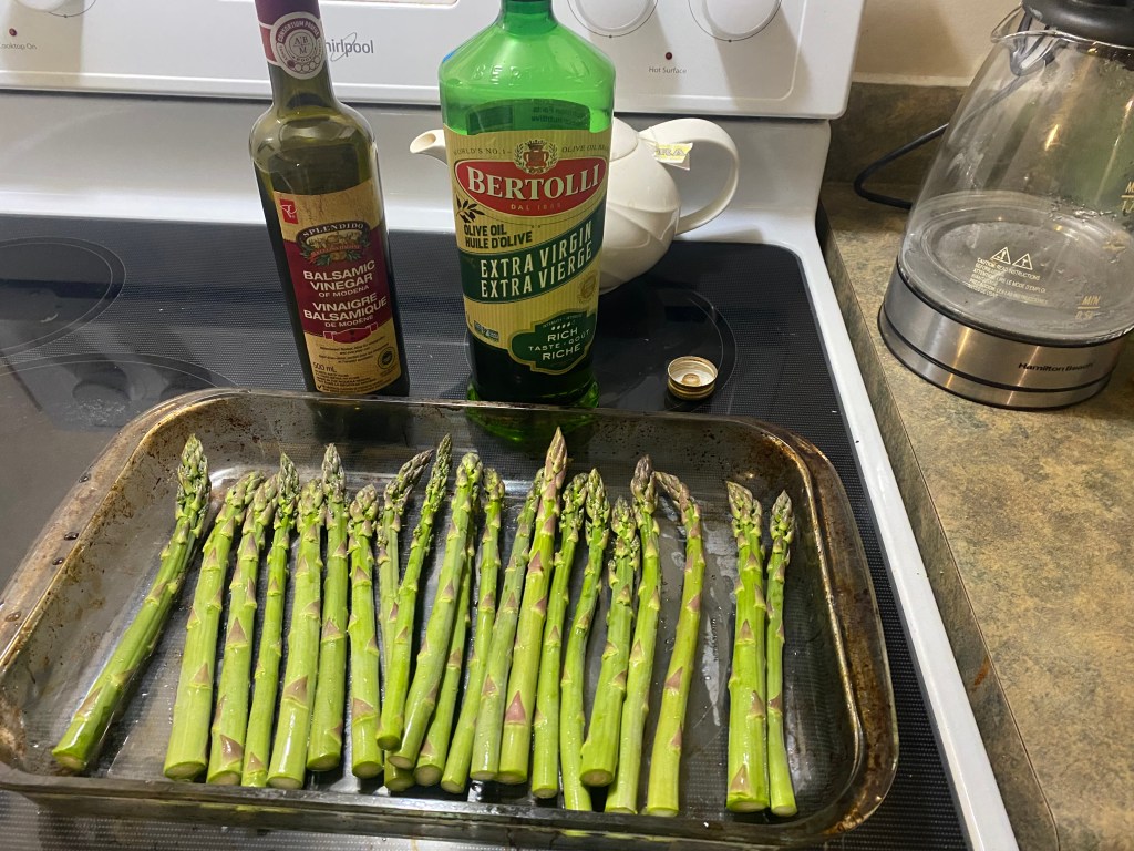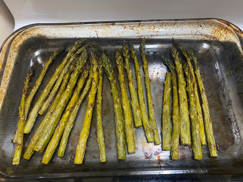 Your asparagus should be done at around this time as well. It has some leeway. Slightly crisp or slightly soft, it’s still delicious.
