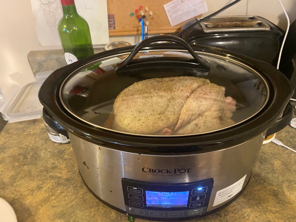 Now, hope to God that when you ran outside, the dog didn’t get your chicken, like she got your whole family’s pulled pork yesterday. Cover the slow cooker with a lid and set it to 3-4 hours on high or 5-6 hours on low. Now go break up the fight in the playroom and explain to your child that you can’t “accidentally” pinch someone.