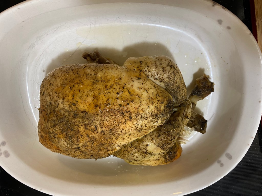 I grew up with oven roasted chickens. What a comfort food! But, they require knowing the weight of your chicken so you can calculate the cooking time, checking on it, spooning juice overtop, covering it with tinfoil if it’s getting too brown, and chopping vegetables to go with it. This way of cooking a whole chicken fits better with a zero-time lifestyle.
